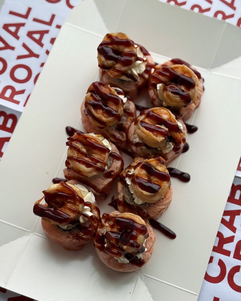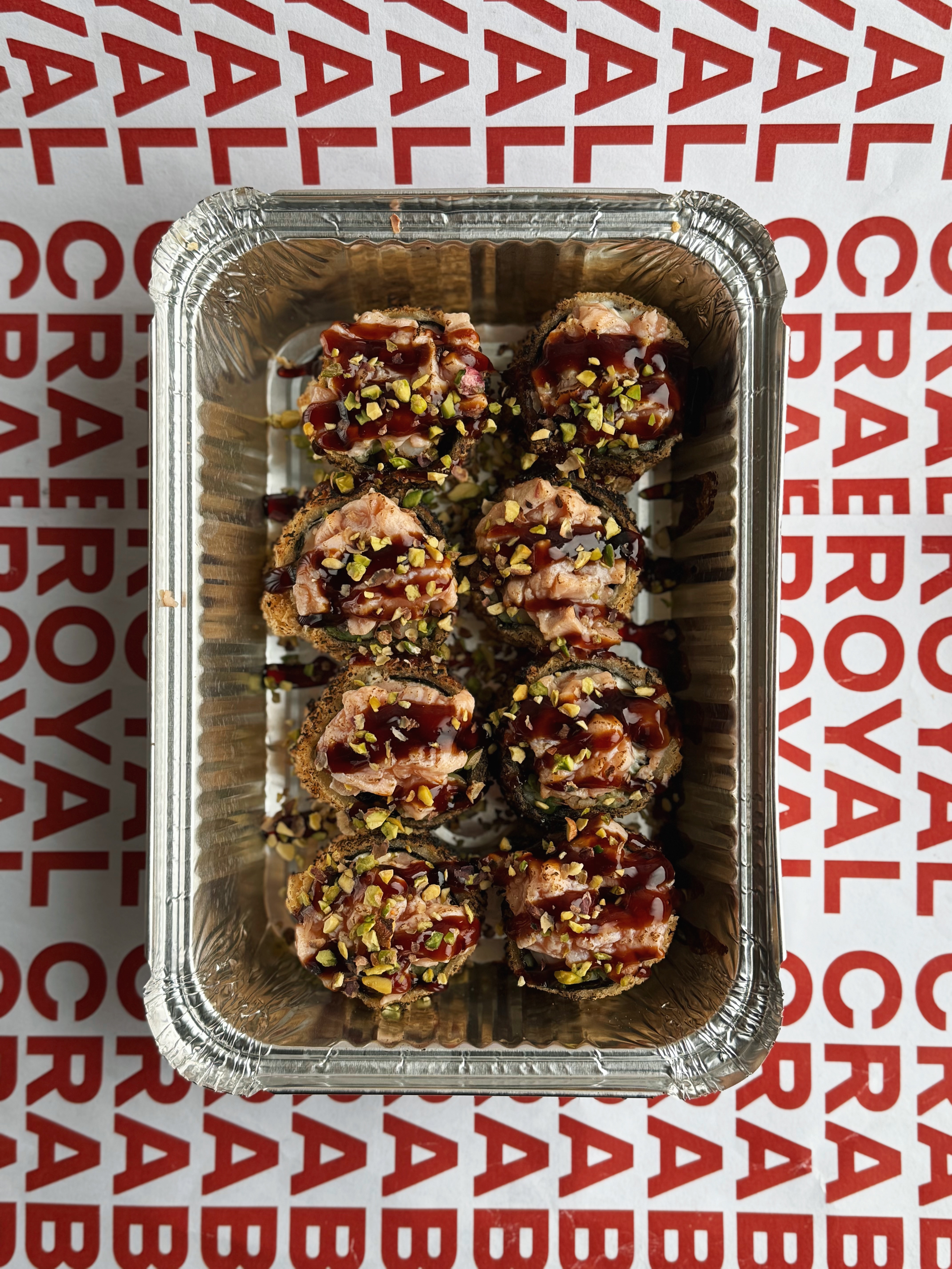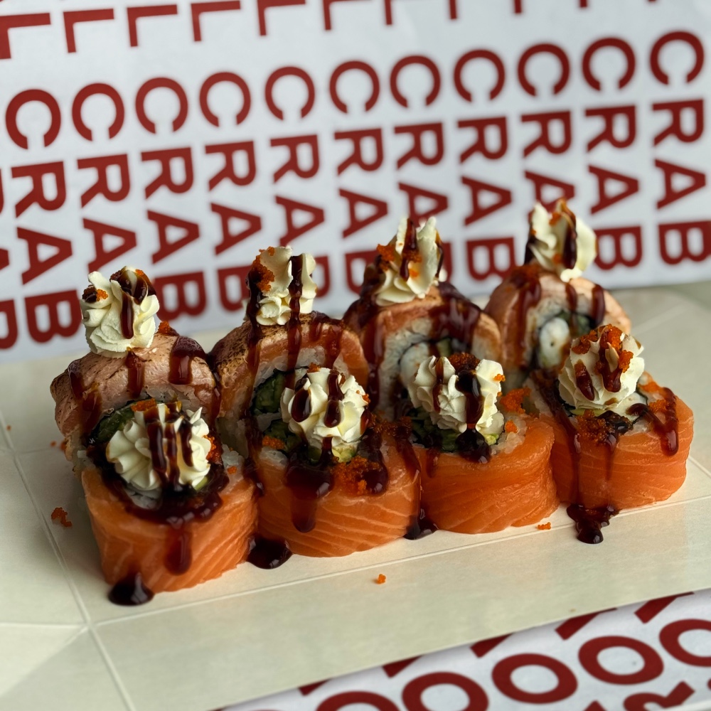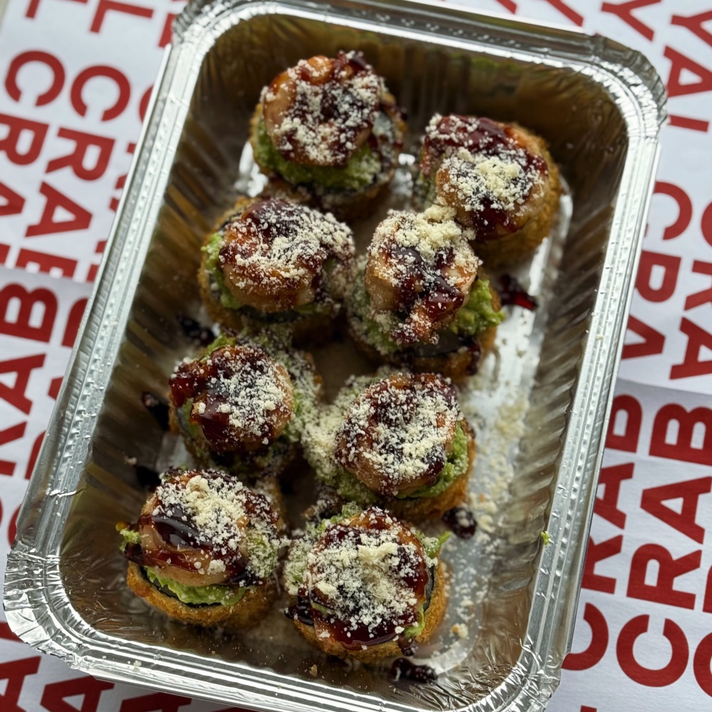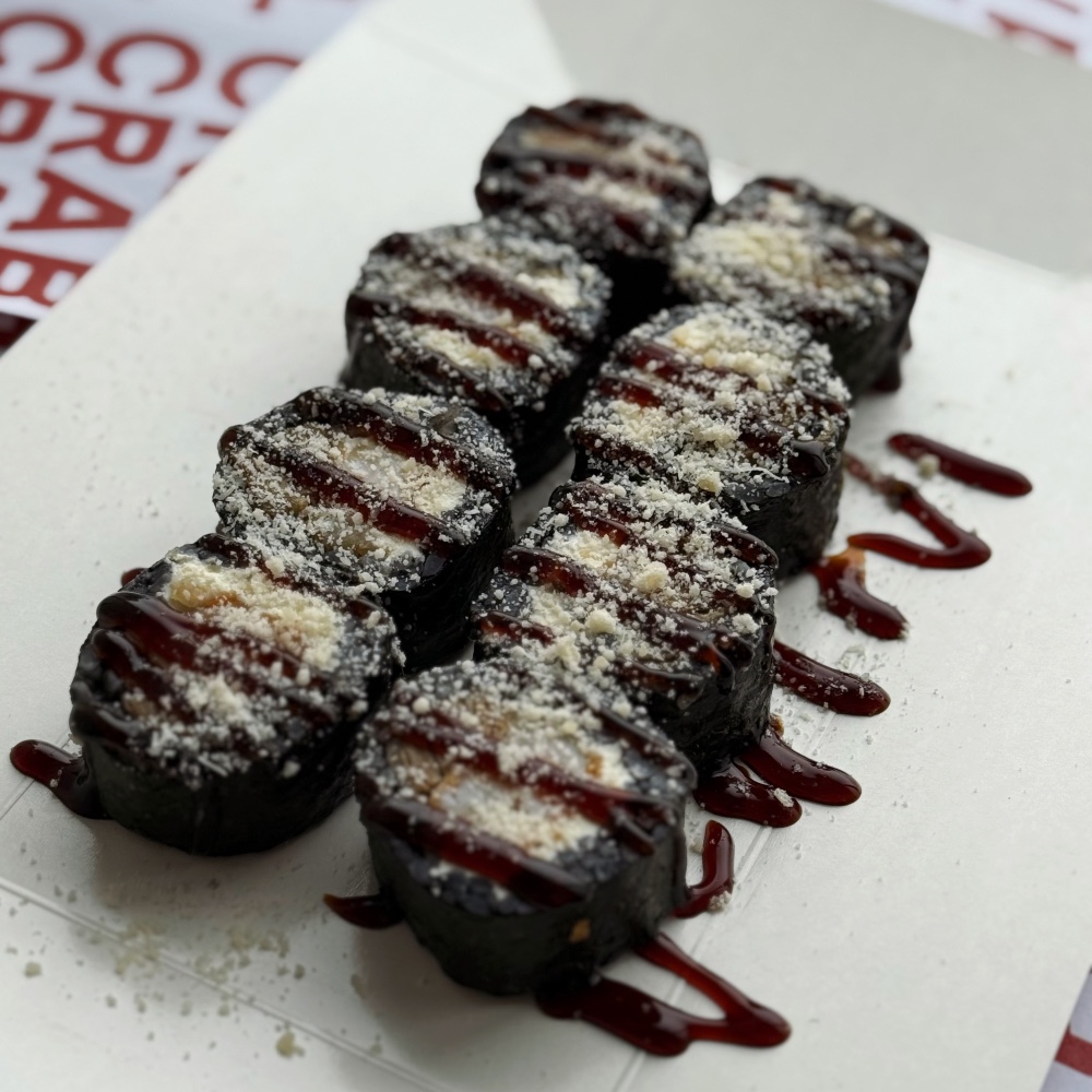 Неймовірні сирні кульки з додаванням сніжного краба ,вершкового сиру Hochland , рису та соусу спайсі .Подаємо з сирним соусом .
